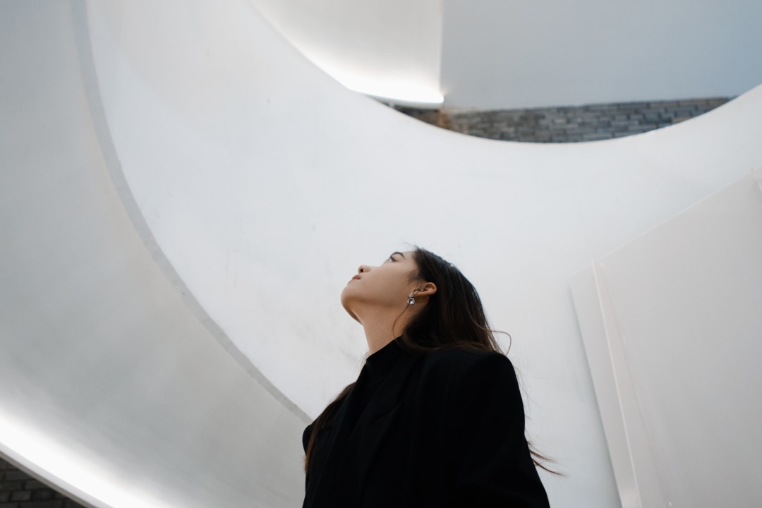 Cover of the Goldman Sachs wealth planning guide titled 'Beyond the Build: A Wealth Planning Guide for a Business Sale or IPO'. The cover features a woman looking upwards in a modern, white, architectural space